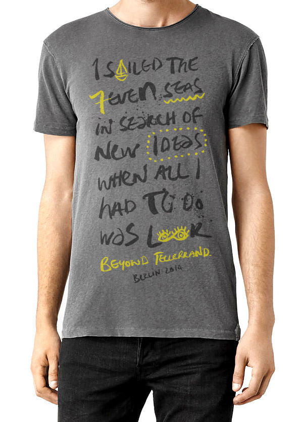 For the very first beyond tellerrand event in Berlin our good friend Mike Kus designed t-shirt and wth this also poster, coffee mug, and a notepad. Printed in black and yellow on a dark grey Heavy Cotton Gildan shirt.