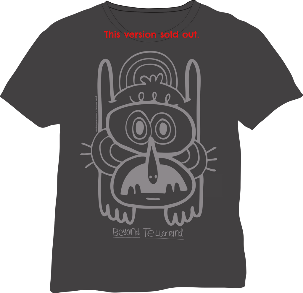 We are extremely honored that no one less thatn Jon Burgerman designed two shirts for beyond tellerrand // Düsseldorf 2014. You can choose the color, but not the design as only one design is still available. This shirt is printed in light grey on a dark grey Heavy Cotton Gildan shirt.