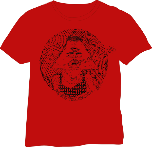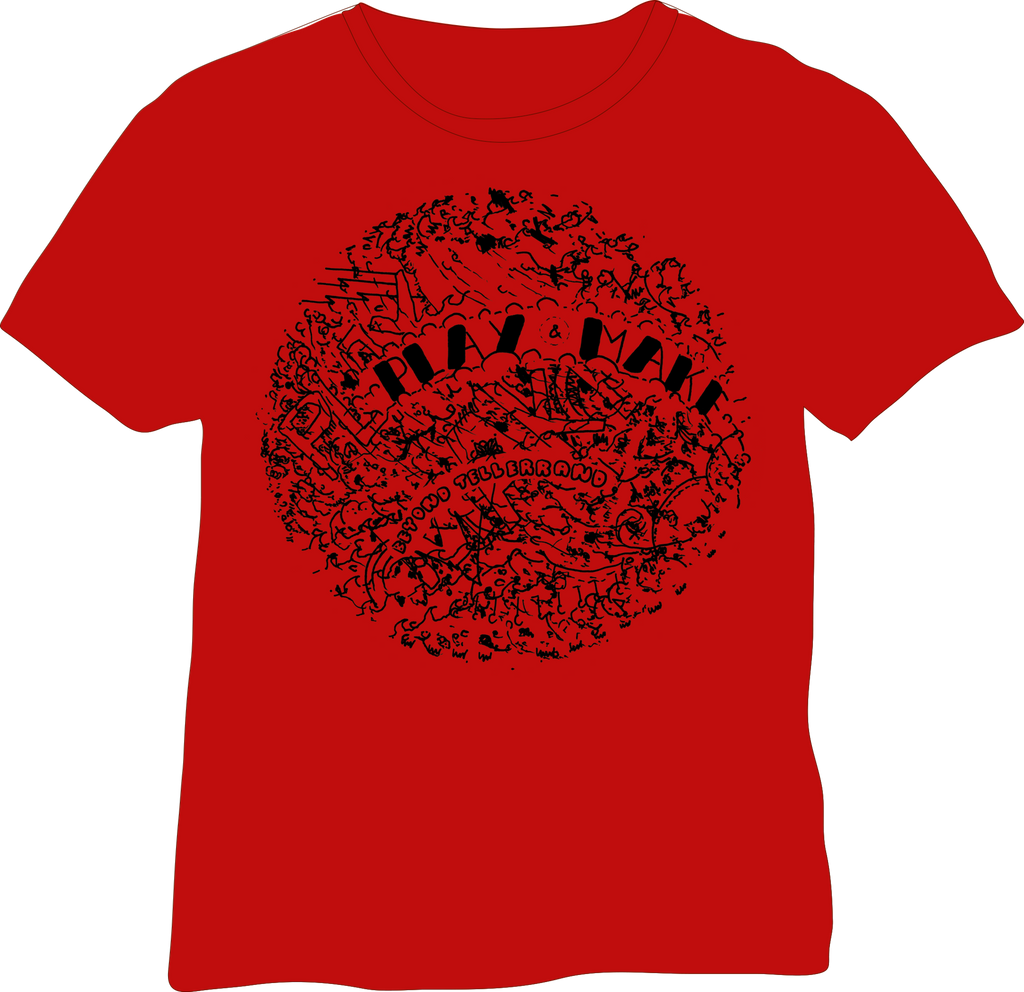 The fantastic James Paterson designed 3 different t-shirts for beyond tellerrand // PLAY & MAKE 2013. You can ask for one particular design, but it might be, that only the other version(s) is left in your chosen size. I'll email you to check which design is still available. This absolutely very limited hand drawn design is printed in black on a Gildan Heavy Cotton shirt in red.