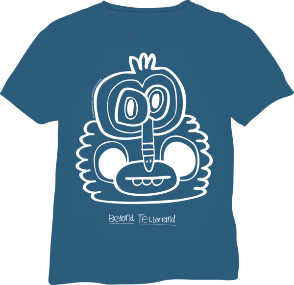 We are extremely honored that no one less thatn Jon Burgerman designed two shirts for beyond tellerrand // Düsseldorf 2014. This is Version is printed in white on a blue Heavy Cotton Gildan shirt. This blue edition is very limited as it was only given to the staff of btconfDUS 2014.